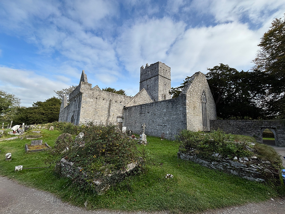 There is free parking at the Muckross estate which includes farms, a house, an abbey and more. We started by walking over and exploring the abbey. There are lots of old trees, including one inside the cloister of the abbey. We then took a walk along the lakeside and hiked over to Torc Waterfall.