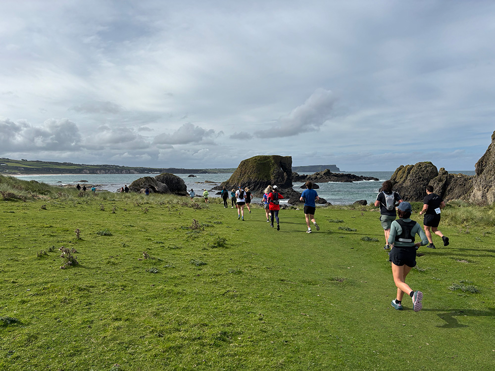 The race starts in the quarry and heads up along the headland. There are several chokepoints and stiles so it is easy going at first with lots of queuing, but it isn’t the kind of race you try and go fast in anyway. You pass through Ballintoy Harbour, which is a beautiful sight.
