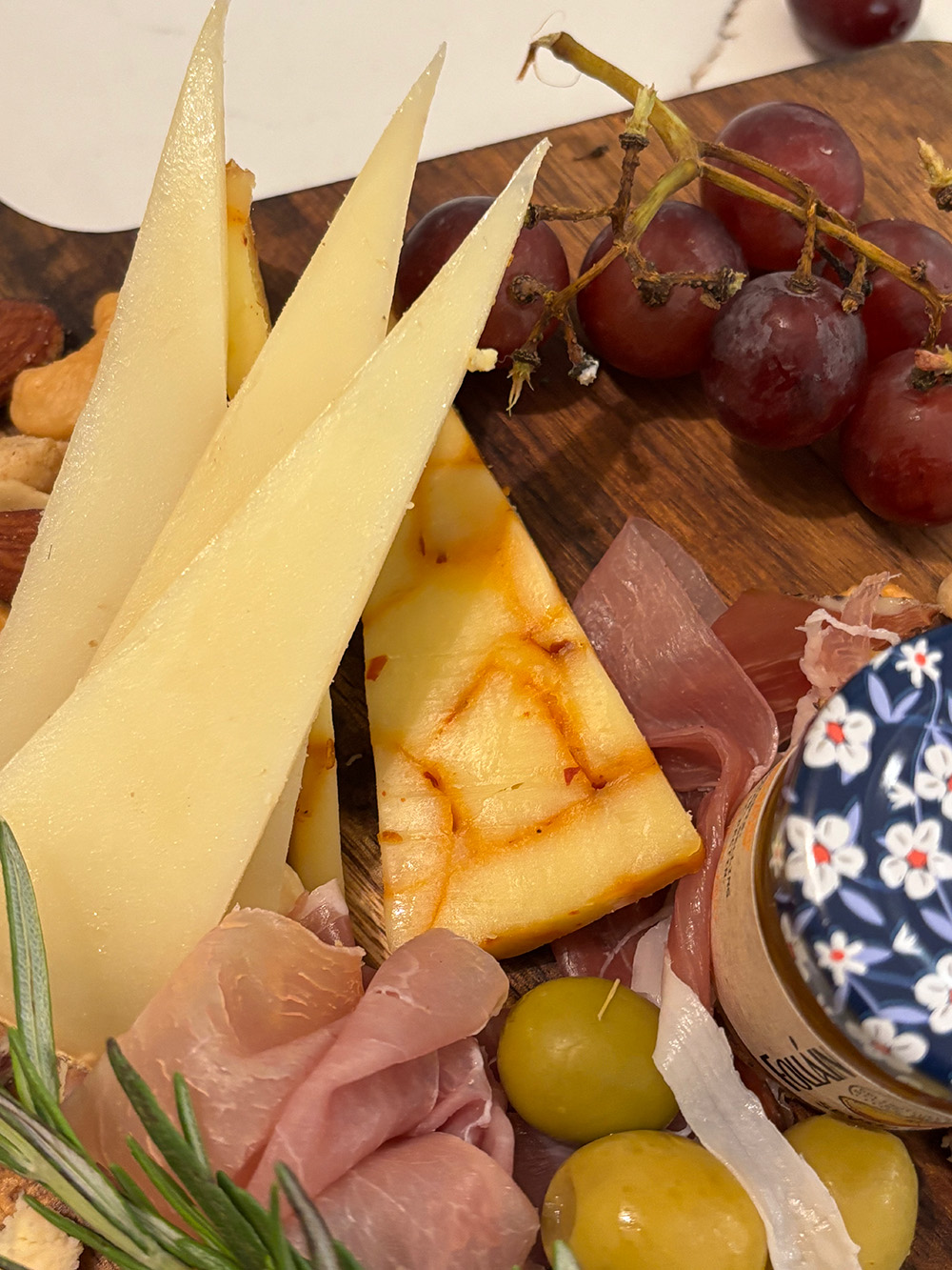 Our building recently held a cheese and wine night for residents. We’ve been trying to work out what these is. ChatGPT thinks it is a Spanish-style cheese coated with paprika such as a Pimentón Ibérico or Idiazabal, but when I searched for those, they did not look that similar.